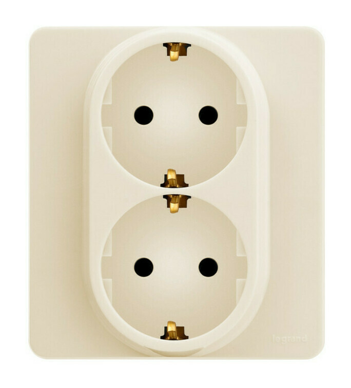 Розетка двойная Legrand INSPIRIA, скрытый монтаж, с заземлением, слоновая кость, 673751