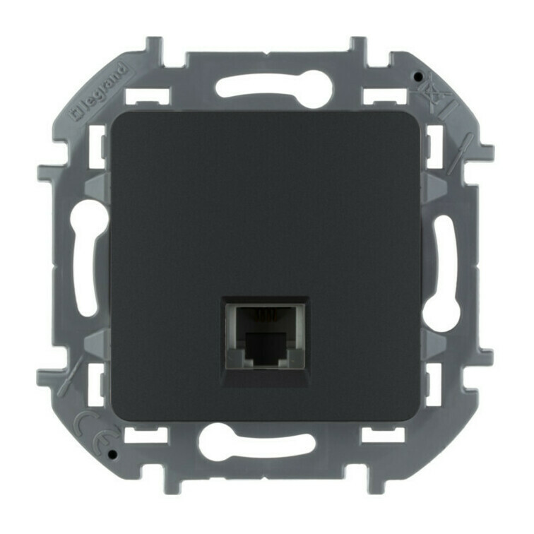 Розетка телефонная RJ11 Legrand INSPIRIA, скрытый монтаж, с заземлением, антрацит, 673823